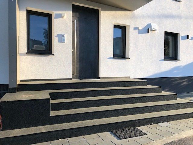 Terrassenplatten Betonoptik auf Schienensystem verlegt